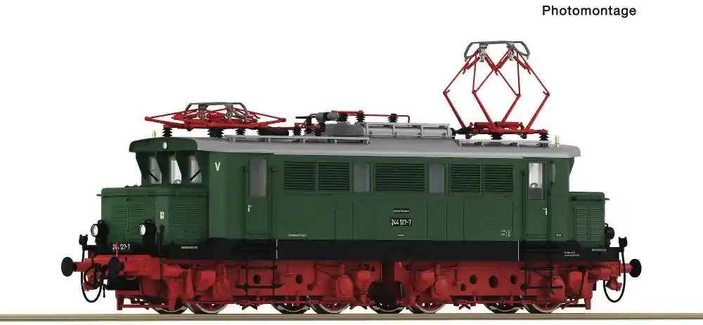Elektrolokomotive 244 127 der Deutschen Reichsbahn.Formvariante!■ Ausführung mit Scheren-Stromabnehmer Typ RBS 58■ Extra angesetzte Scheibenwischer■ Freier Führerstands-Durchblick■ Im Digitalbetrieb mit schaltbarer Führerstands- und Maschinenraumbeleuchtung■ Beheimatung Rbd Halle, Bw Leipzig-WahrenVon der Elektrolokomotive der Baureihe E 44 wurden von 1932 bis 1954 fast 200 Lokomotiven in Dienst gestellt. Die nach Kriegsende im Mai 1945 im mitteldeutschen Netz stationierten Lokomotiven mussten nach der Einstellung des elektrischen Betriebs im Rahmen der Reparationen an die UdSSR abgegeben werden. Im Jahr 1952 konnte die DDR die Mehrzahl der Maschinen wieder zurückkaufen. Im Raw Dessau wurden insgesamt 46 Lokomotiven wieder aufgearbeitet und ab 1955 in Dienst gestellt. Zwischen 1961 und 1964 rüstete die DR die Loks mit Stromabnehmern des Typs RBS 58 mit Doppelwippe aus. Dadurch konnten sie mit nur einem angelegten Stromabnehmer betrieben werden.