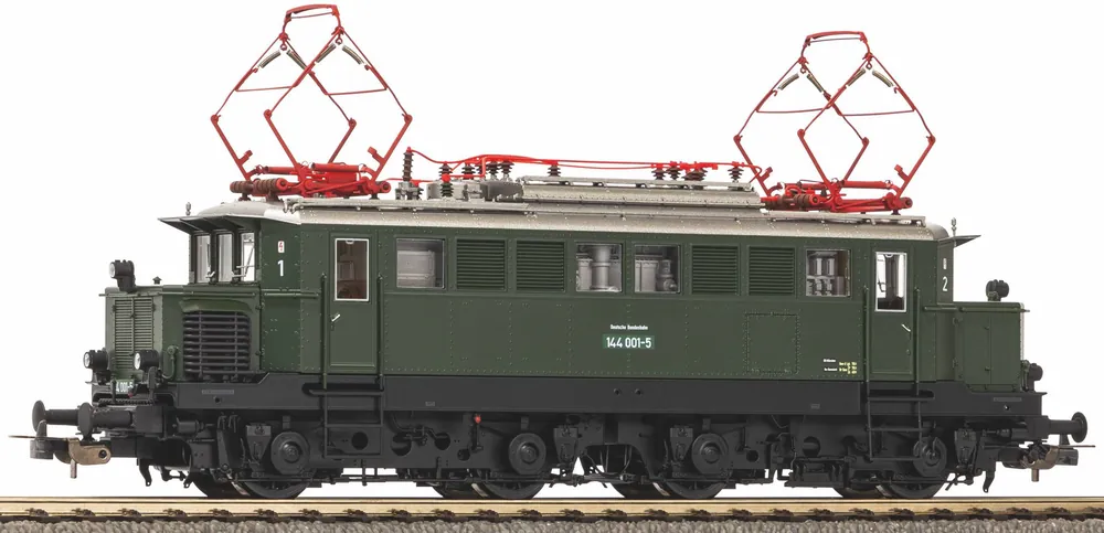 Die Erfolgsgeschichte der Baureihe E 44 begann 1930 mit der von den Siemens-Schuckertwerken gebauten Vorserienlok E 44 001. Ihr folgte ab 1932 die erste Serie von laufachslosen Elektroloks mit Einzelachsantrieb in Deutschland. Eine Erfolgsgeschichte ist auch die PIKO E 44. Im Rahmen dieses Projekts wurde erstmals die bekannte Vorserienlok E 44 001, spätere 144 001-5, als Großserienmodell umgesetzt. Die Miniaturen der Vor-, wie auch der Serienloks brillieren durch ihre exakt maßstäbliche Umsetzung. Gleichermaßen scharfe wie präzise Gravuren am Gehäuse sorgen für enorme plastische Tiefe und unterstreichen den exzellenten Gesamteindruck. Dies setzt sich auch im Fahrwerksbereich mit zahlreichen extra angesetzten Teilen an den markanten Drehgestellen fort. Identisch in der Modellqualität, wurden dennoch die Unterschiede zwischen den Vorbildlokomotiven in größtmöglicher Detailtiefe im Modell umgesetzt. Auch technisch lässt das Modell kaum Wünsche offen: Der Antrieb ist gleichermaßen bewährt wie robust, eine PluX22-Schnittstelle ermöglicht die kinderleichte Nachrüstung eines Digital-Decoders. In dieser Konstellation ist beispielsweise das Schalten von Maschinenraum- und Führerstandsbeleuchtung möglich. Die werkseitig mit einem PSD XP Sound-Decoder mit Fahrzeugsound ausgestatteten Varianten bringen das typische „Knurren” des Tatzlagerantriebs auf die Modellbahn.