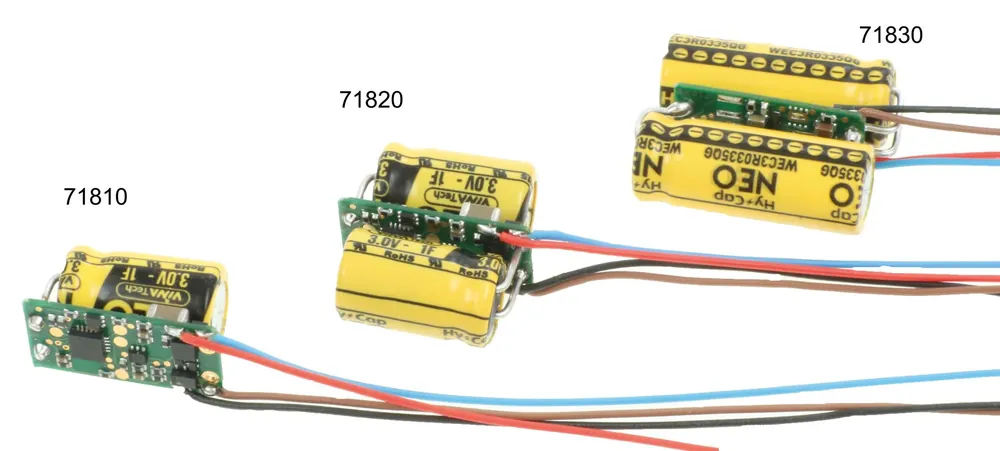 Der 71810 ist für Loks mit niedriger Stromaufnahme gedacht. Leistungstarke H0-Loks sollten mit dem 71820 ausgerüstet werden und für große Loks, auch in den Spurweiten 0–IIm (G), ist der 71830 geeignet.
