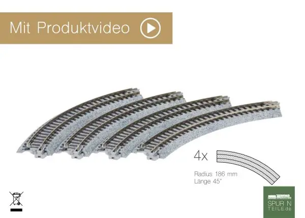 Direktkauf Kato Unitrack – 20-172 / 7078118 – Gleis gebogen R 183-45° (4 Stück)