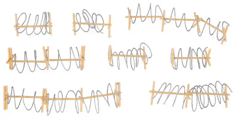 Ausstattungs-Set mit 15 mobilen, mit Stacheldraht verstärkten »Spanische Reiter«-Barrieren.
