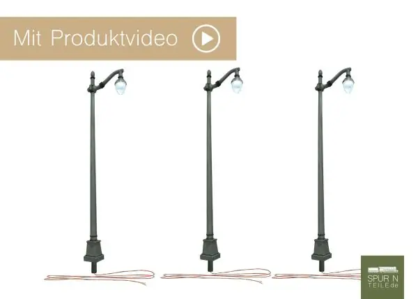 3 einzeln ansteuer- und dimmbare, warm-weiße LED-Leuchten an Masten; Kabellänge: 91,4 cm.