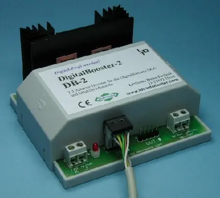 Der kurzschlussfeste DigitalBooster DB-2 liefert 2,5 Ampere Digitalstrom. Über den 5-poligen Boosterbus wird er mit der Digitalzentrale verbunden. Der DB-2 unterstützt die Digitalformate Märklin-Motorola und DCC.