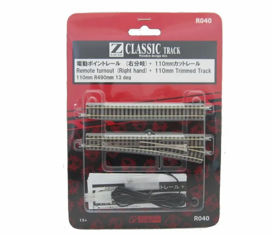 Rokuhan R040 E-Weiche rechts R490-13° 110 mm 1:220 Spur Z Neu Ausverkauf