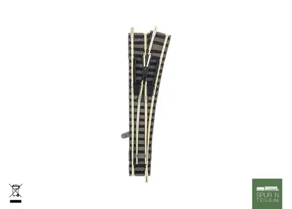 Länge 111 mm (Standardlänge), Abzweigwinkel 15°, Abzweigradius 430 mm. Nachrüstbar mit Elektroantrieb.