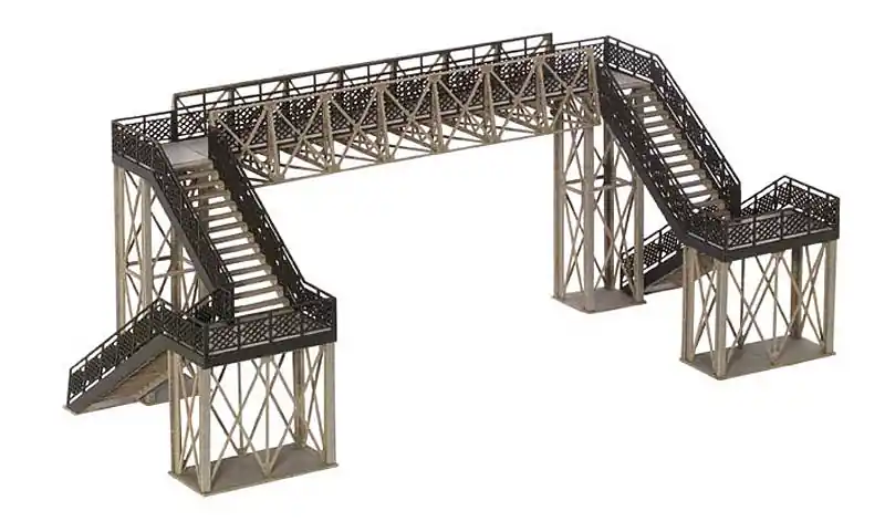 Änderungen der Zusammenstellung, Farb- und Formvarianten vorbehalten.Filigraner gehtÉs nicht! Dieser filigrane Fußgängerübergang orientiert sich am legendären „Escher Steg“, der in Ravensburg in der Nähe von Wangen im Allgäu stand. Die äußerst detaillierte Ausführung des Modellbausatzes ist der perfekten Nutzung der Laser-Cut-Technologie geschuldet, die z. B. feinste Geländer erlaubt. Eine ähnlich hochwertige Darstellung solcher Details ist im herkömmlichen Kunststoff-Spritzguss in dieser Form nicht möglich. Der Grundbausatz des Fußgängerüberganges überspannt bis zu zwei Gleise. Er kann mit der Erweiterung jedoch beliebig ausgebaut werden und ist damit auch in größeren Bahnhofs-Bereichen einsetzbar. Inklusive Spezialkleber. Liefertermin: April 2013