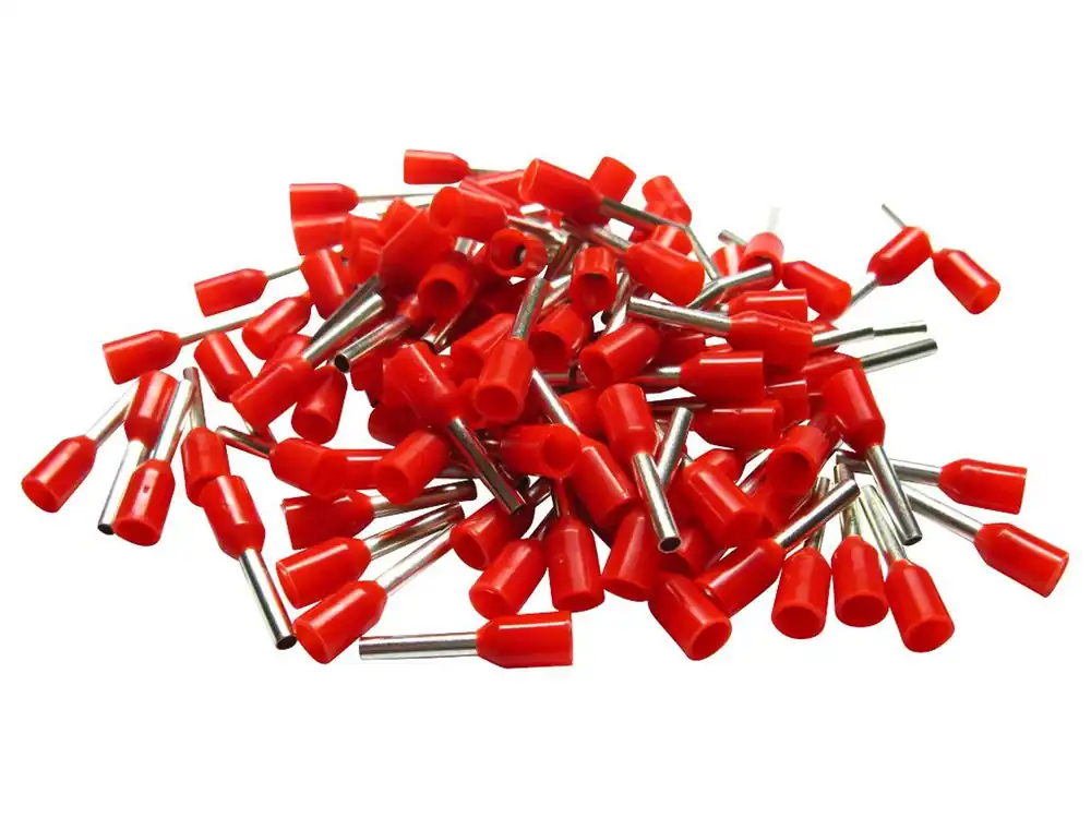 1,0mm² Aderendhülsen – isoliert, für den sauberen Endabschluss von flexiblen Litzenenden. Gepackt zu je 100 Stück in einem Kunstoffbeutel.
