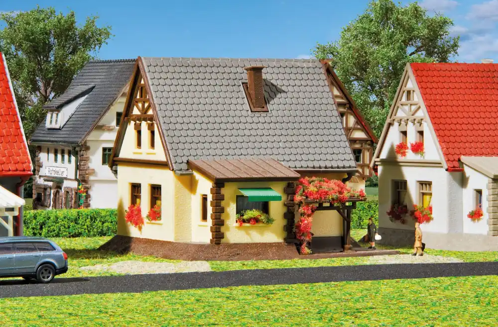 Mit den Bausätzen der Vollmer Adlerstraße 2 – 8 können Sie einen kompletten Straßenzug mit Wohn- und Geschäftshäusern gestalten. Bereits mit 3 Bausätzen schaffen Sie sich eine preiswerte und abwechslungsreiche Häuserfront.
