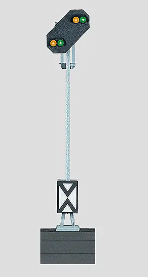 Einfaches Vorsignal zum Einsatz vor Hauptsignalen. Wechsel von Vr0 (Gelb/Gelb) auf Vr1 (Grün/Grün). Steuerung des Fahrstroms über Schaltpult 72751. Wartungsfreie LED. Höhe ohne Sockel ca. 61 mm. Passendes Schaltpult 72751. Mit anderen Schaltpulten lässt sich das Signal 74380 nicht schalten!