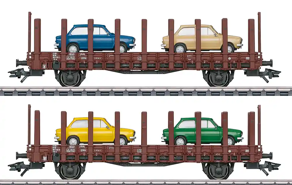 Zertifiziert Märklin 46404 – NS Set Rungenwagen 2-teilig Ep.4, beladen mit DAF66 (Brekina) in Sonderfarben